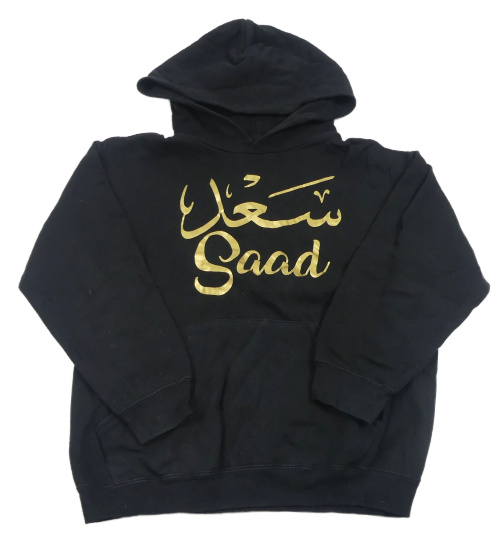 Čierna mikina so zlatými nápisy a vreckom a kapucňou FRUIT of the LOOM