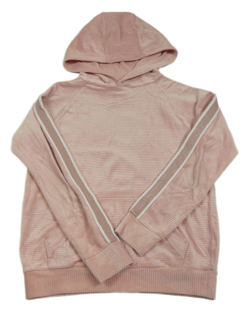 Svetloružová zamatová rebrovaná mikina s proužkem a kapucňou F&F