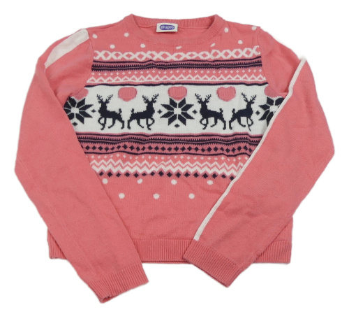 Ružovo-biely vzorovaný crop sveter s jeleňmi Hop&Hipps