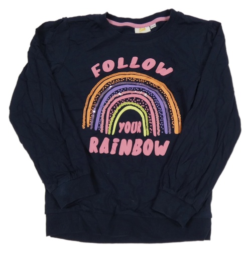 Tmavomodré mikinotriko s dúhou s flitrami a nápismi Kids