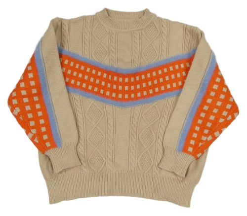 Béžovo-tmavooranžový melírovaný vzorovaný oversize sveter