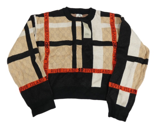Nové - Béžovo-čierno-červený kockovaný crop sveter s logy River Island
