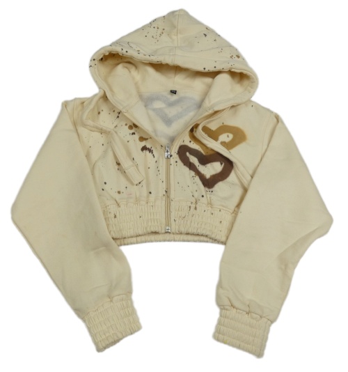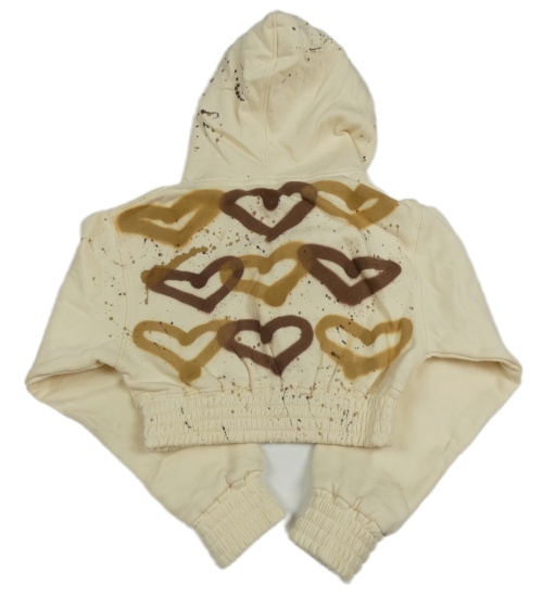 Krémová prepínaci crop mikina so srdiečkami a kapucňou