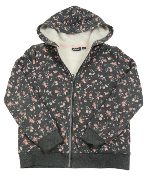 Tmavosivá melírovaná prepínaci zateplená mikina s kvietkami a kapucňou alive