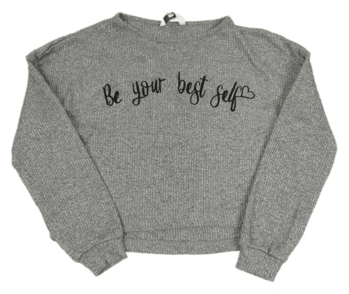 Sivá rebrovaná úpletová crop mikina s nápisom E-Vie