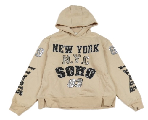 Béžová mikina s nápisem z flitrů a kapucňou River Island