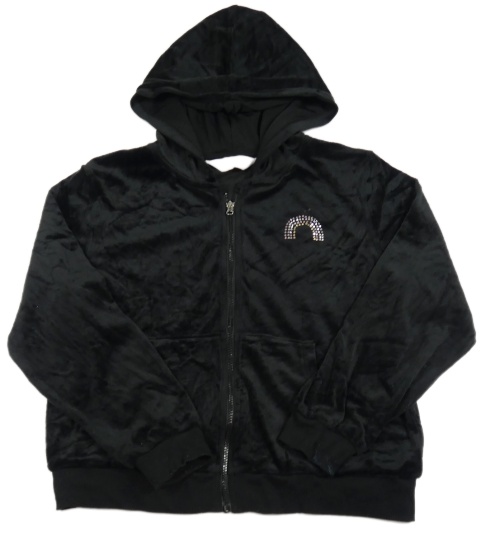 Čierna zamatová prepínaci mikina s duhou z kamínků a kapucňou H&M