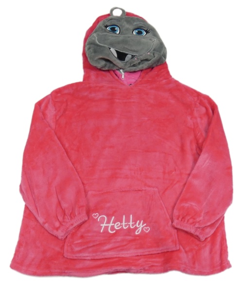 Ružová plyšová mikina s kapucňou s hrochem