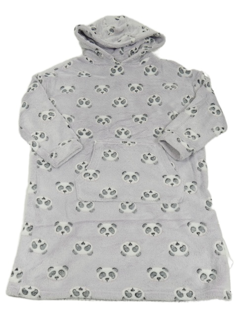 Lila plyšová domáceá oversize mikina s pandami a kapucňou Tu