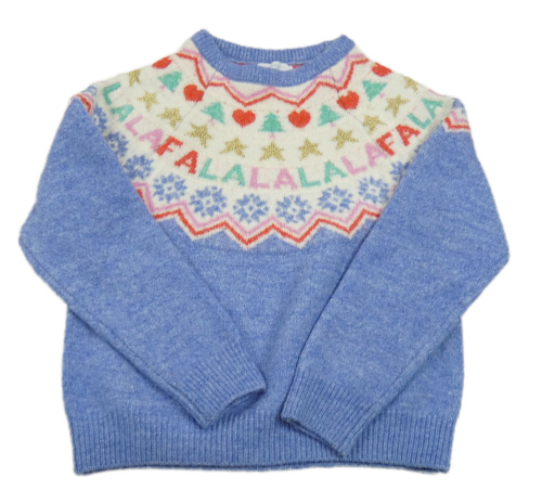Modro-biely vlnený sveter so vzorom a nápisom Primark