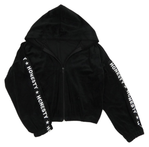 Čierna plyšová prepínaci crop mikina s kapucňou