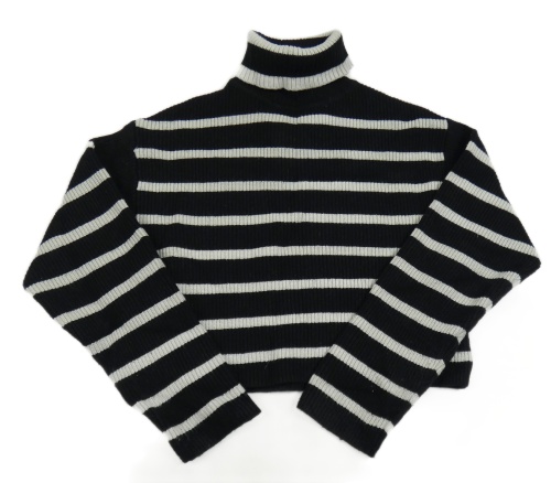Čierno-svetlosivý pruhovaný rebrovaný crop sveter s rolákom Zara