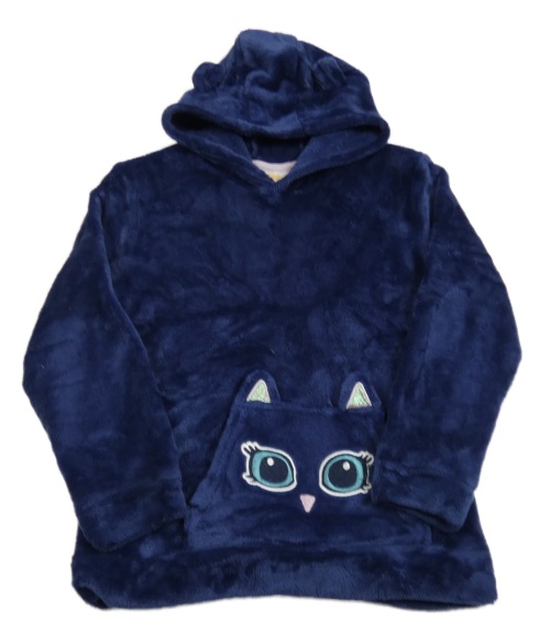 Tmavomodrá chlpatá mikina so sovičkou a kapucňou kids