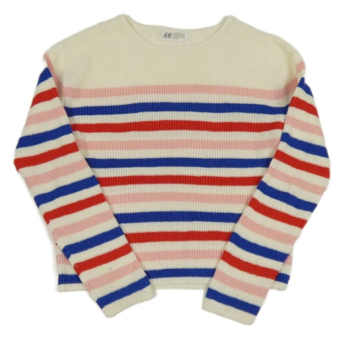 Smetanovo-modro-červený pruhovaný sveter H&M