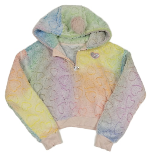 Farebná plyšová crop mikina so srdiečkami a kapucňou s brmbolcom River Island