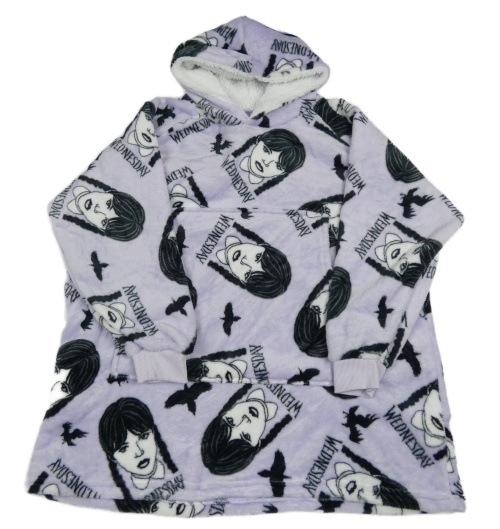 Svetlofialová chlpatá oversize mikina s Wednesday a kapucňou