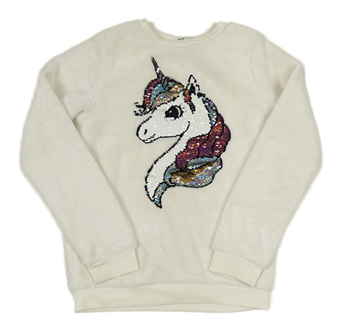 Biela plyšová mikina s jednorožcem z flitrů H&M
