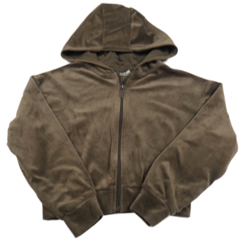 Hnedá zamatová prepínaci crop mikina s kapucňou Pep&Co