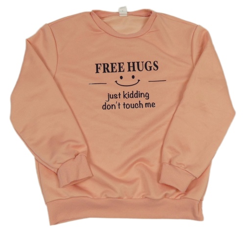 Broskvová mikina s nápismi a smajlíkom SHEIN