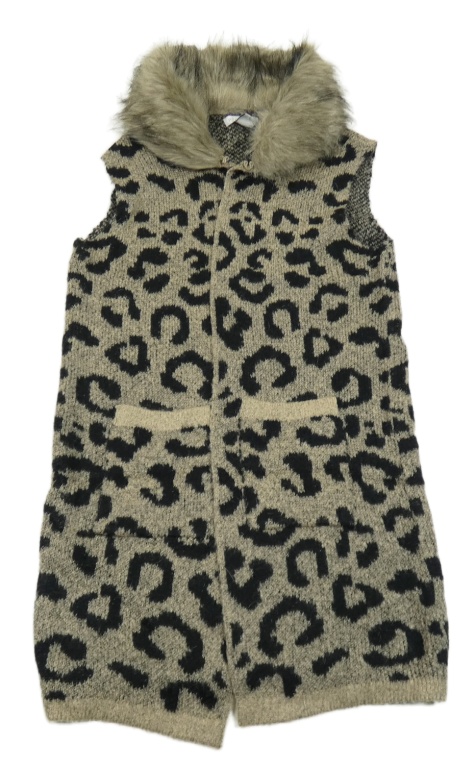 Béžovo-černá vzorovaná dlouhá vesta kožešinou Primark