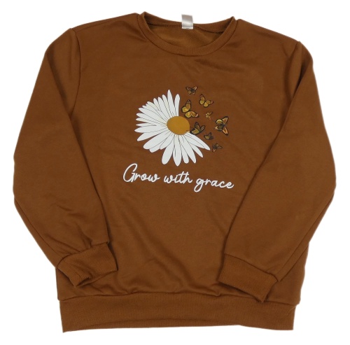 Hnedá mikina s kopretinou a motýlikmi a nápisom