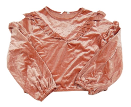 Lososová zamatová crop mikina s volánikmi Shein