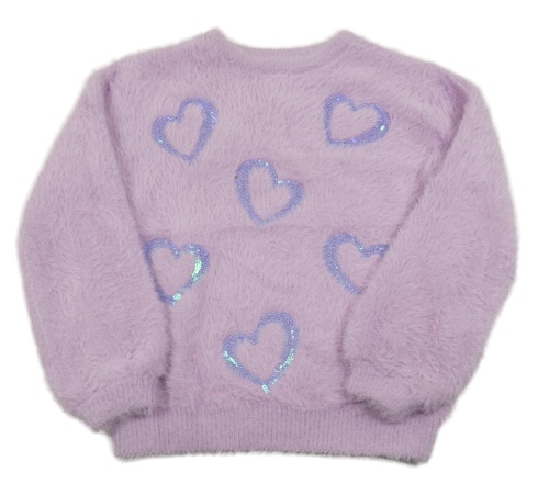 Lila chlpatý sveter so srdíčky z flitrů Dunnes