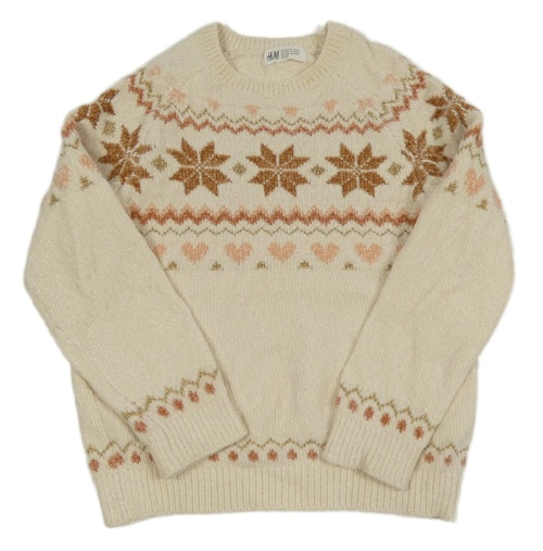 Svělebéžový žinylkový sveter s vločkami a srdiečkami a vzorom H&M