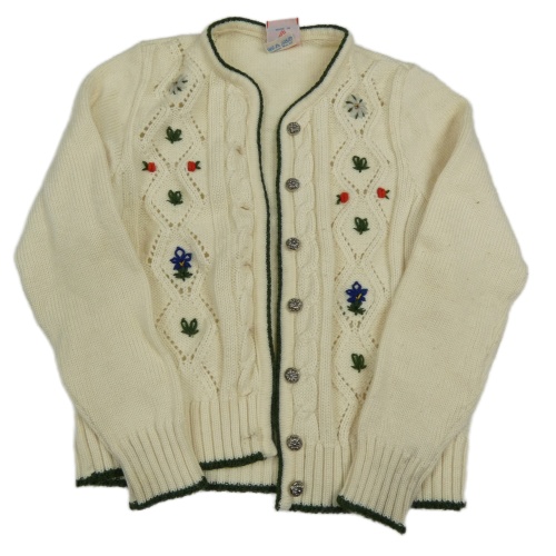 Smotanový vzorovaný vlnený prepínaci sveter s kvetmi