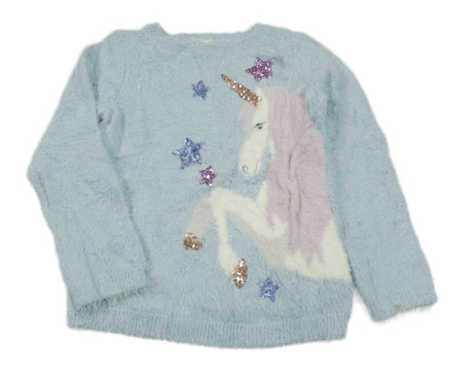 Svetlomodrý chlpatý sveter s jednorožcom Monsoon