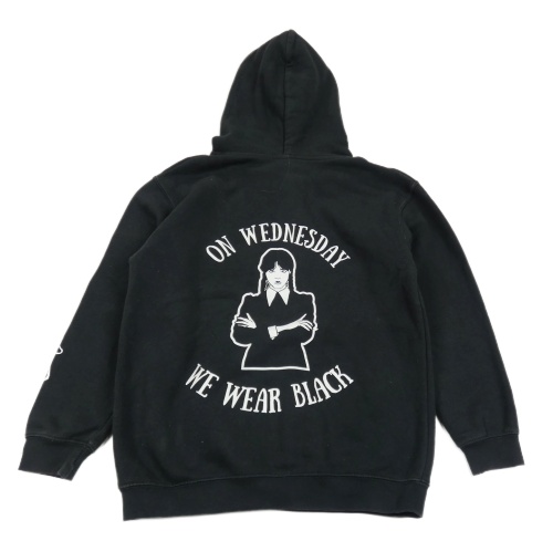 Čierna mikina s Wednesday a kapucňou Fruit of the Loom