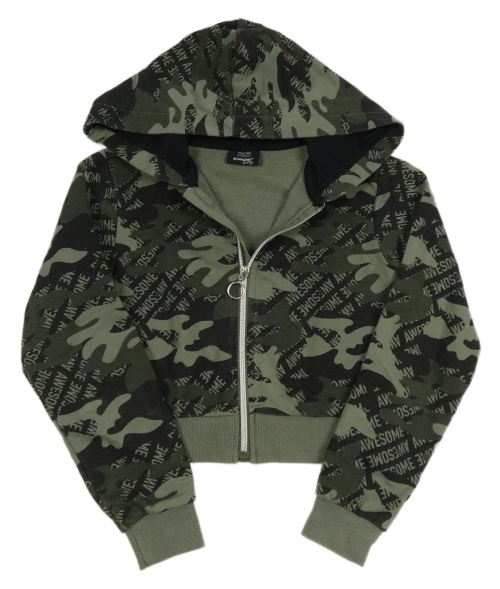 Kaki-čierna army prepínaci crop mikina s kapucňou Page one young