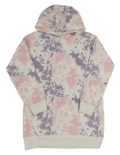 Bielo-levandulovo-ružové batikované teplákové šaty s kapucňou F&F