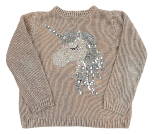 Pudrový melírovaný žinylkový sveter s jednorožcem z flitrů PRIMARK