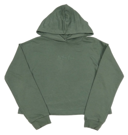 Khaki oversize crop mikina s nápisom a kapucňou Miss E-vie