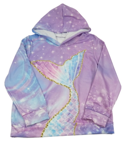 Fialovo-modrá mikina s hviezdami a ocasem a kapucňou