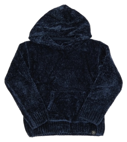 Tmavomodrý melírovaný žinylkový sveter s vreckom a kapucňou C&A
