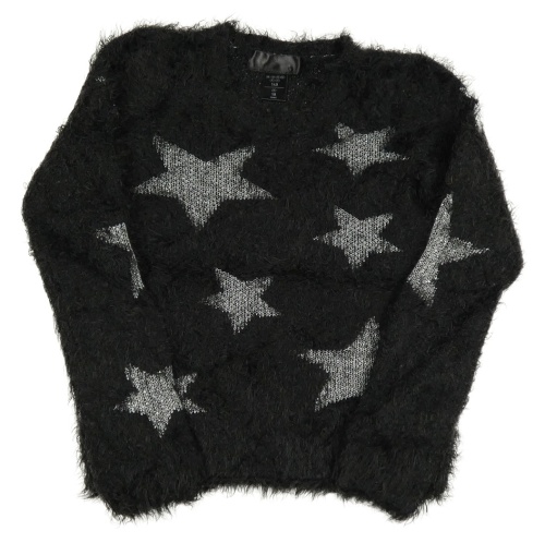 Čierny chlpatý sveter s hviezdičkami POCOPIANO