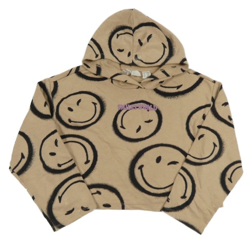 Hnedá crop mikina so smajlíkmi a kapucňou H&M