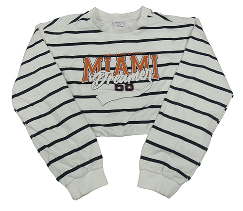 Bielo-čierna pruhovaná crop mikina s nápisom