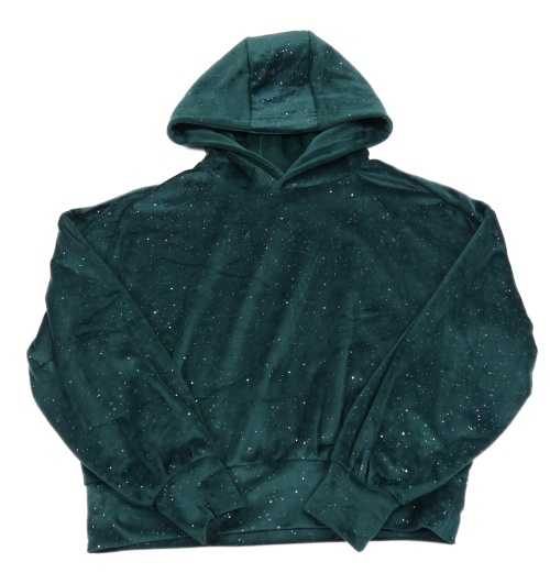 Tmavozelená zamatová trblietavá crop mikina s kapucňou