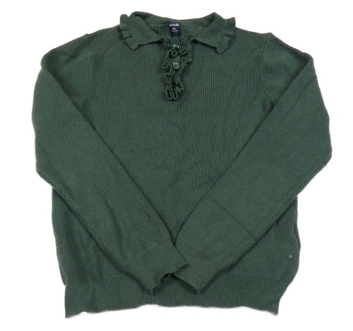 Khaki rebrovaný sveter s volánikom a golierikom KIABI