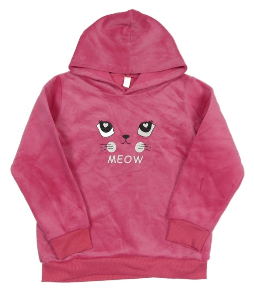 Ružová plyšová mikina s mačkou a kapucňou