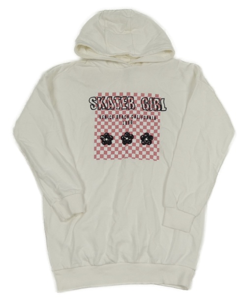 Biela šatová mikina s nápismi a květy z flitrů a kapucňou F&F