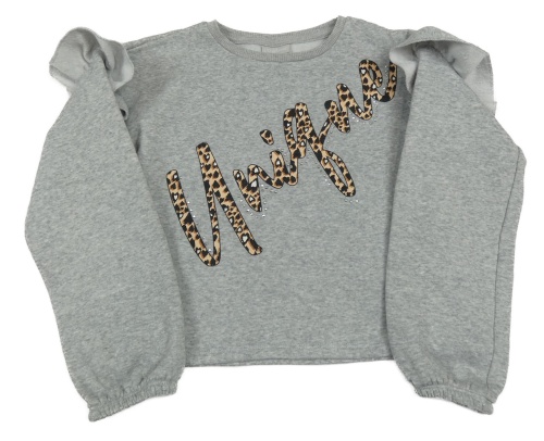 Sivá melírovaná crop mikina s nápisom s kamienkami a volánikmi Matalan