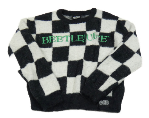 Bielo-čierny kockovaný chlpatý crop sveter s nápisom Primark