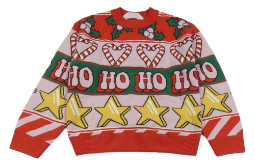 Ružovo-červený vzorovaný sveter s nápisom a hviezdami H&M