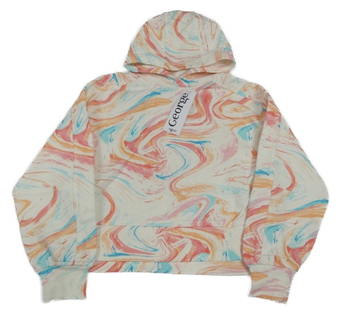 Nové - bielo-farebná batikovaná crop mikina s kapucňou George