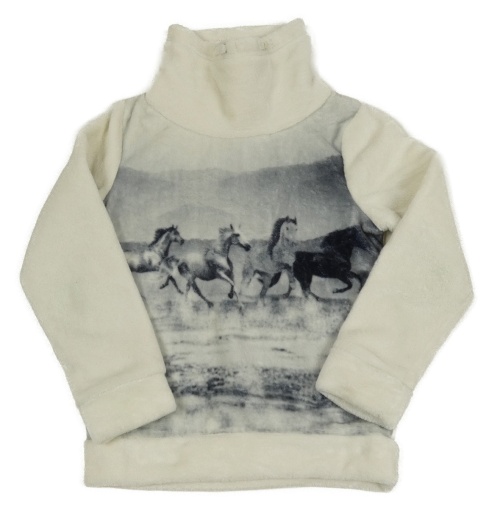 Smetanovo-sivá plyšová mikina s koníky a rolákom Yigga