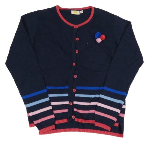 Tmavomodrý prepínaci sveter s modrými a ružovymi prúžkami kids